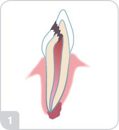 Infekterad pulpavävnad avlägsnas med en rensningsfil.